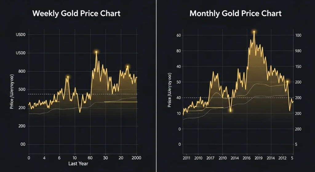 Long-term trends help assess overall market direction and risk. They also support better planning for bulk gold purchases and investment strategies.